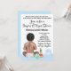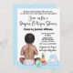 Fralda de convite para chás de fraldas com um doce bebê com brinquedos em um fundo azul bonito.