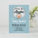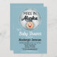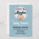 Este chá de fraldas engraçado mostra um lindo rosto branco de bebê que diz "Made In Alaska" em um fundo azul. A imagem está na frente e atrás do convite.