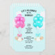 Adoráveis chás de fraldas rosas e azuis gêmeos convidam gêmeos meninas e garotos com buquês de balão.