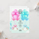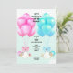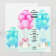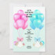Adoráveis chás de fraldas rosas e azuis gêmeos convidam gêmeos meninas e garotos com buquês de balão.