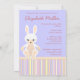 Este doce coelho branco dá uma bela olhada no seu convite para o chá de fraldas. E coordenar adesivos e postagens tornam seus convites e anúncios especiais.