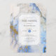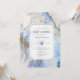 Convite de chá de fraldas de mármore azul e dourado contemporâneo com um retorno correspondente para um toque especial extra.