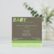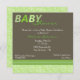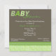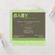 Na moda chá de fraldas convite feito em forma quadrada, em verde e marrom neutro em sexo. O texto gráfico verde, no topo, lê Chá de fraldas, com o restante do texto do convite personalizável. O padrão circular verde-claro corre ao longo do fundo, com uma borda verde de fita. O texto em verde e branco está pronto para personalizar, para atender às suas necessidades de eventos. É um convite encantador para a mãe ser querida.