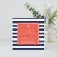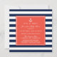Convite para chás de fraldas moderno com marinhos e faixas de coral e âncora. Outras cores estão disponíveis.