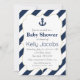 Convite para Chás de fraldas de Âncora Náutica marinho e Dourada