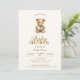 Este design de convite é perfeito para um tema de chá de fraldas de ursos de pelúcia, elegante e neutro em gênero! O ursinho é uma imagem de uma pintura aquosa. As cores desse convite incluem tons de marrom-claro e o texto está em marrom-escuro.