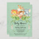 Um chá de fraldas cártaro de selva de aquarela, com uma girafa adorável, leão, macaco e elefante com folhas da selva e flores cor-de-rosa, colocado sobre um fundo de burlap verde perfeito para um chá neutro em termos de gênero.