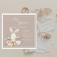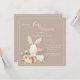 Um adorável coelho de coelho desenhado com aquarela em um convite para chá de fraldas cesto. Fundo bege neutro As cores suaves simples definem o tom de um doce chá de fraldas temático. Um convite tão doce e simples para esse evento especial.