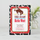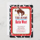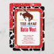 Olá! Celebre seu Chá de fraldas com nosso Convite de festas do Cowboy. Este convite de festas ocidental apresenta um vaqueiro rodeio no seu cavalo, um padrão de cochicho e um padrão paisley vermelho. Um convites de festas de rodeio perfeito para a sua festa do chá de fraldas oeste, convites para chuveiros de bebês de casais ocidentais ou usá-los como convites para rodeios de cowboy