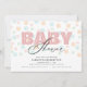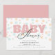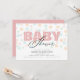 Este convite de chá de fraldas é perfeito para a chegada de uma menina. O design oferece um aspecto mínimo moderno com a palavra "bebê" aparecendo nas rosas claro e o fundo é um padrão de pontos em cores pastéis moles.
