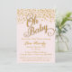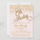 Convite para Chás de fraldas|Confetti Dourado e cor-de-rosa