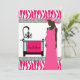 Convite para Chás de fraldas rosa e zebra com mãe grávida e berço