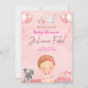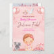 Celebre a chegada de uma pequena princesa com este adorável convite de chá de fraldas rosa. Apresentando um charmoso design de aquarela com uma menina, um coala fofo, um carregando de cegos, um ursinho de pelúcia, e balões pastéis, este convite é perfeito para uma celebração doce e elegante. Personalize esta placa de chá de fraldas imprimível para o seu evento e crio