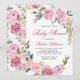 Convite de chá de fraldas personalizável com ilustrações feitas à mão de uma aquarela de rosas cor-de-rosa, hálito do bebê, folhas e folhagem. Perfeito para uma chá de fraldas e chás de fraldas primavera.