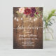 design de Chá de fraldas com fundo de madeira rústico, luzes de jarro de pedras e flores de aquarela. Para acessar ferramentas avançadas de edição, vá para o link "Personalizar" e, em seguida, "clicar para personalizar mais".