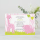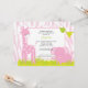 Comece o seu evento com o nosso convite de Chá de fraldas de menina bonitinho com a mais doce girafa e elefante. Design apresenta um fundo listrado de zebra rosa e branca com videiras selvagens. Perfeito para um chá de menina. Apenas personalize com suas informações e você está pronto para ir! Itens correspondentes, incluindo a postagem do chá de fraldas, adesivos favoritos, cartões de agradecimento e obrigado que você adesivos também estão disponíveis em nosso compro. © Blackleaf Studios