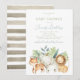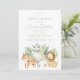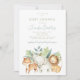 Este belo convite apresenta a aquarela de animais safari da selva, incluindo um leão, tigre e elefante. Perfeito para um chá de fraldas de sexo neutro ou de rapaz. Personalize facilmente o texto com o editor on-line.