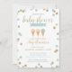Este convite temático impresso de sorvete de frente e verso é perfeito para um chá de fraldas de garotos em qualquer época do ano! Inclui bolinhas azuis, verdes, douradas e brilhantes e cones de sorvete.