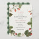 Um doce de baga. bebê está a caminho! Este convite de chá de fraldas com o tema da fruta apresenta uma camada aquosa de morangos e verde. Personalize com suas informações ou clique em "Clique para personalizar mais" para editar estilos de fonte, tamanho e cores.