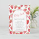 Bonita e moderna cor d'água, morango doce, convite para o chuveiro, doce, de morango, com uma letra elegante. A parte traseira apresenta um padrão correspondente para uma ajuda extra da cutena. Personalize o texto para se adequar à sua celebração. Arte original de Nic Squirrell