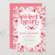 Pequena Chá de fraldas das Meninas Sweetheart, Convite com um quadro de coração rosa e vermelho, com a querida em uma fonte moderna. Sacudir nosso doce convite para ver uma coordenação de volta.