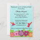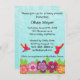 Este design apresenta flores tropicais e beija-flores por cima. Para alterar a fonte, estilo ou tamanho, clique no botão Personalizar. As costas do convite também têm espaço para mais informações ou uma foto. Envie-me uma mensagem com as perguntas que você tiver.