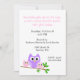 Adoráveis meninas gêmeas convidam para o chá, com gráficos em estilo de desenho animado de uma coruja-mãe colorida ao lado de suas corujas de bebês rosa, em um galho. Todo o texto é personalizável para você personalizar para o seu evento. Adorável convite para a mãe ser amada.