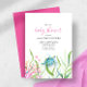 Este chá de fraldas branco, cor-de-rosa e verde, apresenta as palavras "Chá de fraldas" definidas em uma tipografia de script com letra na moda com detalhes de eventos em uma fonte de serifa clássica de cinza carvoca em um fundo branco nítido com uma pá inferior da minha mão pintada por uma única tartaruga-d-água, estrela-do-mar, coral-do-mar e algas marinhas. A placa de convite reverte para uma cor rosa complementar. Uma ideia simples, mas fofa, para um tema do bebê do submarino para uma garota. Trabalho de arte por Victoria Grigaliunas. Para ver a suíte inteira e mais convites para o chá de bebê no oceano visite www.zazzle.com/dotellabelle