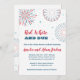 Este convite de chá de fraldas neutro em termos de gênero é perfeito para um partido de 4 de julho. Este design vermelho, branco e devido apresenta fogos de artifício coloridos e tipo divertido.