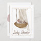 Vintage Chá de fraldas Invitation with baby in bassinet.