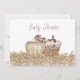 Vintage Chá de fraldas Invitation with baby in wicker basket, deitada na grama.