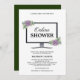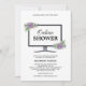 Convites para um chá de fraldas virtual com ilustrações de monitor e flor