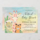 Animais Bons, Convite Virtual para Chás de fraldas. Avise a todos sobre o chá de fraldas virtual que você está planejando com este belo convite. Apresenta animais de safari desenhados à mão e folhagem num fundo de aquarela. Personalize-o com os detalhes do evento. Porque nós criamos nosso próprio trabalho de arte você não encontrará essa imagem exata de outros designers. Original Watercolor © Michele Davies.