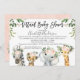 Safari Animal Virtual Chá de fraldas Convite para animais safari de menina doce e elegante, convite para chá de fraldas com quatro animais da selva, alguns arranjos florais cor-de-rosa e algumas folhagens. Esta é uma forma doce de convidar convidados para o chá de fraldas do safari virtual de uma menina.