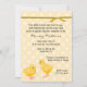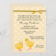 Bonito convite para chás de fraldas gêmeos feito em uma bolinhas branca e amarela de ouro pálida, com gráficos de dois pintinhos amarelos e uma fita na parte superior. Texto preto totalmente personalizável para atender às suas necessidades de eventos. Adorável convite para que a mamãe seja amada.