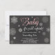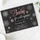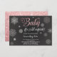 Convite para chá de fraldas de inverno sobre um fundo de quadro negro com flocos de neve e brilho rosado sujo e as palavras "Baby It's Cold Outside". Perfeito para chás de fraldas de meninas, convites de chá de panela, convites de aniversário de inverno, chá de fraldas de co-ed ou o que você quiser. Anuncie o dia especial da sua garotinha com este convite. Se você ama esta design visite mais em www.zazzle.com/vginvites Victoria é um designer profissional de convites localizado em Júpiter, FL perto de West Palm Beach