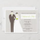 Comece seu evento bem com nossa noiva na moda e nosso convite para chás de casamento de noivo apresentando uma elegante noiva e uma silhueta de noivo segurando flores verdes em um fundo listrado de cinza bonito. Apenas personalize com suas informações de casamento e você está pronto para ir. Vejam o nosso correio correspondente e agradeçam as cartas do nosso compro!