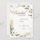 Convide seus convidados para comemorar a noiva a ser com este elegante chá de panela botânico. Com folhas de eucalipto verde-oliva macia, sotaques florais de ouro e tipografia de guiões sofisticada, este design de aquarela é perfeito para uma celebração de classe e eterno. Totalmente personalizável para seus detalhes de eventos, fazer ideal para chás de panela modernos, mas inspirados na natureza.