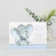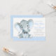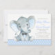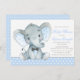 Chá de bebê elefante com adorável elefante de bebê a aquarela vestindo uma gravata de arco preta em um doce fundo de bolinhas azul-bebê. Estes adoráveis convites para o chá de bebê elefante são facilmente personalizados para o seu evento simplesmente acrescentando os seus detalhes. Você também pode adicionar uma cor de fundo.