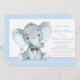 Chá de bebê elefante com adorável elefante de bebê a aquarela vestindo uma gravata de arco preta em um doce fundo de bolinhas azul-bebê. Estes adoráveis convites para o chá de bebê elefante são facilmente personalizados para o seu evento simplesmente acrescentando os seus detalhes. Você também pode adicionar uma cor de fundo.