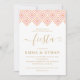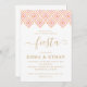 Possui um padrão de diamante rosado e laranja rústico, perfeito para um chá casal.