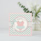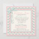 impressão de aqua, cor-de-rosa e fêmur de marfim com sotaques cor-de-rosa suaves e arco e fita com aspecto 3D e um cartão de convite para um batismo de jumper de bolinhas doce para uma menina.