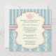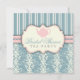 Este convite define a palco de um chá de panela que ela certamente ama. Uma silhueta doce de um bule delicado com um elegante azul de madeira e umdamasco de creme e um padrão de listras de coordenação, com toques de acento de rosa pastel. Tudo cria um design encantador com um sentimento francês que é ajustado para um Chá de panela de festa elegante e feminino.