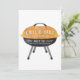 Convite para churrasco e festa perfeito para celebrações de verão. Apresenta uma ilustração de churrasqueira em aquarela.