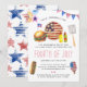 Com uma cena festiva de piquenique americano de churrasco em aquarela. Encontros do Dia da Independência trazem à mente um delicioso smorgasbord, fogos de artifício coloridos, jogos de carnaval, piscinas, cores patrióticas e familiares e amigos. Seu churrasco no quintal pode ser casual, mas isso não significa que sua preparação precise ser. Mostre seu amor pelos EUA enviando convites de festa de verão do dia 4 de julho que deixarão uma impressão duradoura em seus convidados.