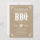 Design de convite de festas de chic festa de noivado com de chic com tipografia elegante rústica e aflita pontilhada com detalhes de canto de rolagem vintage em um fundo de textura de canvas faux burlap impresso. Clique no botão PERSONALIZAR TI para personalizar fontes, mover texto e criar seu próprio design de convite exclusivo.