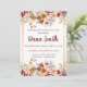 Celebre a chegada da chuva de outono com este convite de chuveiro de flores silvestres de outono elegante e rústico! Um buquê de flores vermelhas, amarelas, roxas e pêssego rodeia o texto junto com uma moldura retangular cor de rosa dourado para trazer um toque de vintage para este convite. O texto apresenta uma combinação de fontes tradicionais e cursivas para um visual único e moderno, além de clássico e atemporal! Este convite dá a quantidade certa de beleza natural encontrada na primavera e no verão e combina com uma bela coleção de cores quentes de outono para um convite perfeito para qualquer chá de noiva, chá de lingerie ou chá de bebê!