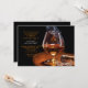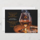 Convite de um homem para celebrar o aniversário, aprovação no exame da Ordem dos Advogados, despedida de solteiro e mais. O cartão apresenta fumaça saindo de um charuto aceso ao lado de um copo de conhaque ou brandy.