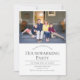 Um convite para o lar com texto personalizável. A foto é uma modelo e deve ser trocada por você. O convite tem um fundo branco, texto de cinza. Cinza Branca de Foto Moderna Convite para Design de Natal | Melissa Patton - Designer<i>Fotografia © Storytree Studios, Stanford, CA</i>