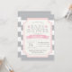 Ajuda de vamos para celebrar a adorável mãe com esta cinza adorável e um convite de chá de fraldas rosa perfeito para dar boas-vindas a uma menina!